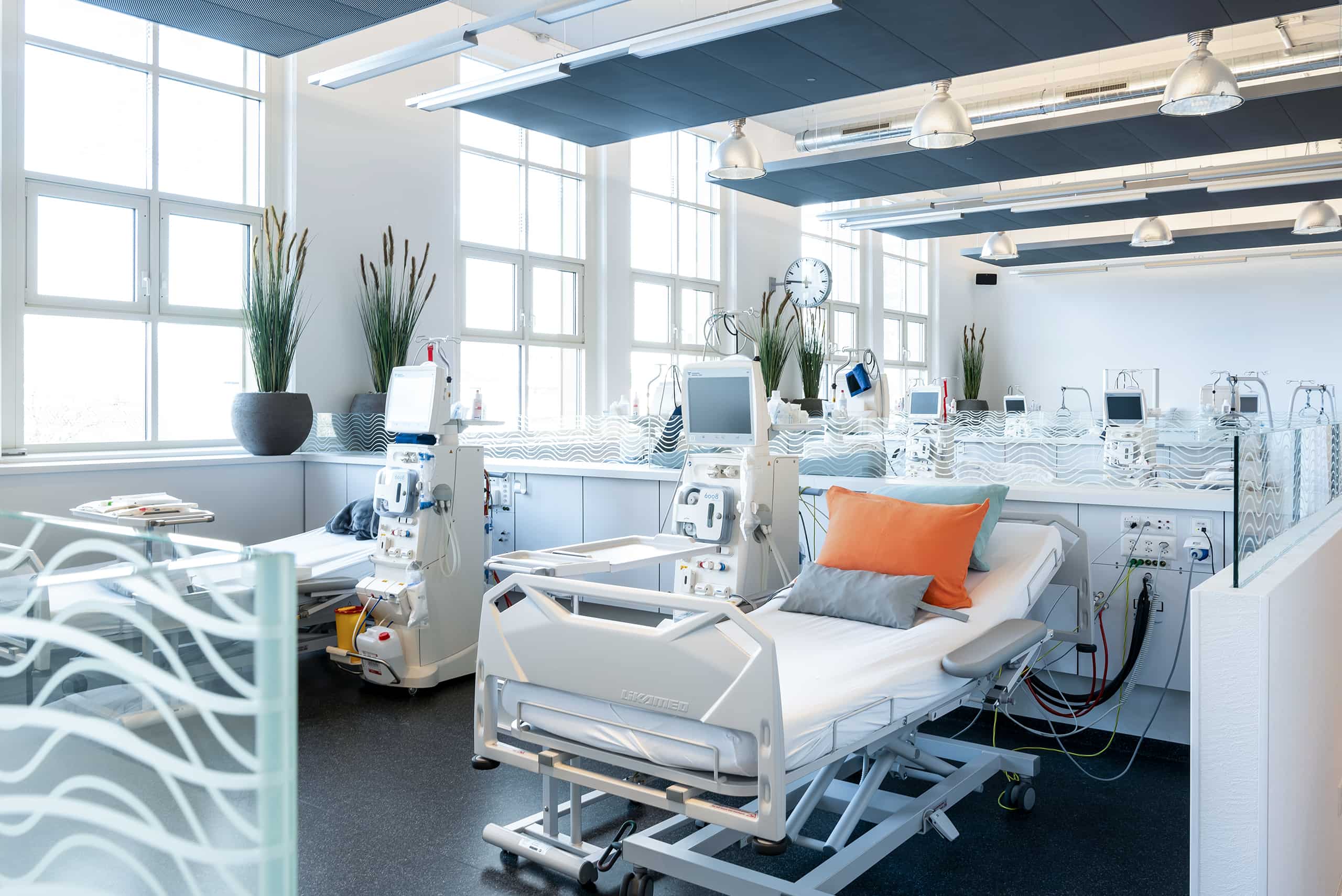 In unserer stilvoll eingerichteten Praxis auf dem Spitalcampus Bülach behandeln wir Patientinnen und Patienten mit Nierenerkrankungen und bieten komfortable Dialyse-Plätze an. Ein Schwerpunkt dieses Standortes ist die Grüne Nephrologie.